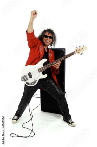 guitarist, guitar, rock, winner, man, music, musician, rope, group, game, bass, bassist, play, concert, studio, jacket, red, isolated, cut-out, background, white