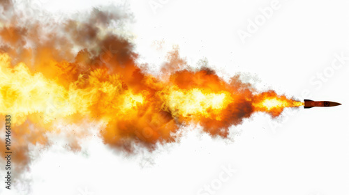 rocket launch with fire on white background