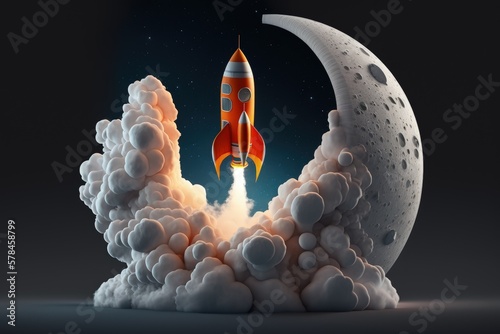 Rocket taking off and moon in the background, Generative AI