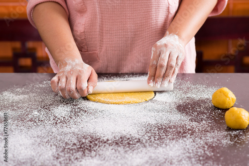 cropped, woman, cook, dough, kitchen, bake, pie, concept, baker, table, flour, homemade, receipe, cake, prepare, food, pastry, dessert, rolling, cookie, occupation, professional, pin, process