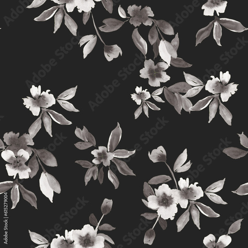 Romantic black and white floral print originally made in watercolor, ideal for wallpapers, fabrics, notebook covers, etc.