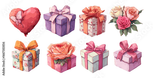 Romantic Clipart Collection of Gift Boxes and Floral Arrangements