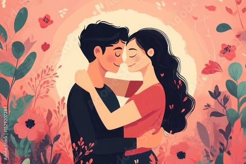 Romantic Couple Embrace A Tender Illustration of Love and Affection