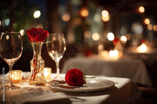 table, wedding, glasses, wine, rose, decoration, flower, dinner, celebration, eatery, setting, plate, bouquet, champaign, napkin, drink, party, flower, love, food, romantic, goggles, alcohol, tablecloth, event, wine glass, valentine