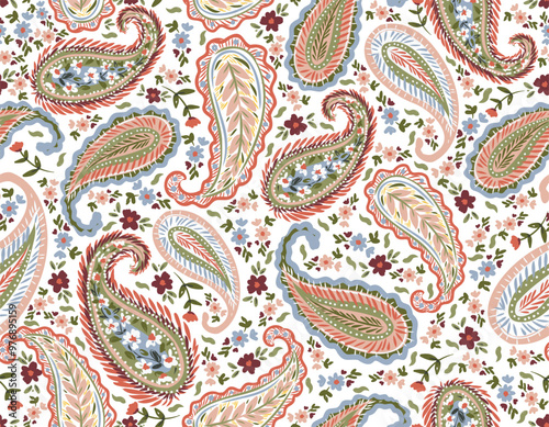 Romantic floral paisley pattern, Persian pattern Indian floral pattern, Vector Illustration