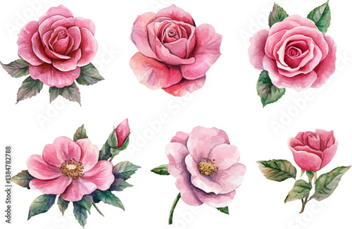 Romantic Hand-Drawn Watercolor Pink Rose Flower Clipart