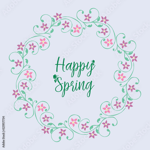 Romantic happy spring greeting card design, with unique leaf and pink wreath frame. Vector