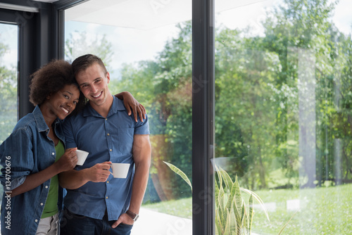 couple, home, luxury, family, young, happy, lifestyle, window, people, hot drink, living, looking, romantic, indoor, house, interior, love, room, person, beauty, adult, portrait, romance, couch, smile, male, joy, together, horizontal, leisure, cheerful, relaxed, woman, man, 2, wife, cup, real, estate, husband, affectionate, lover, hugging, modern, relax, relaxing, window, african american, black