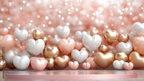 nubes, ball, design, background, pink, gold, white, romantic, love, valentine, three-dimensional, illustration, texture, pastel, decor, beautiful, artistic, shape, modern, graphic, artwork, colours, composition, geometric