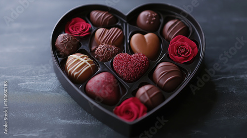 Romantic Heart-Shaped Chocolate Box with Fresh Roses for a Perfect Gift of Love