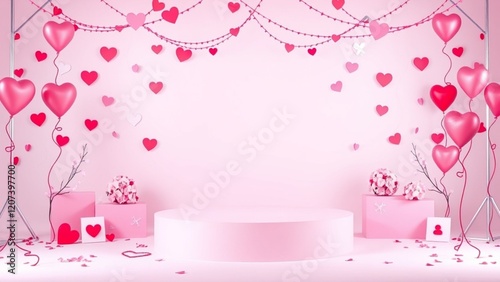 nubes, balloon, pink, background, romantic, festive, love, party, card, cute, three-dimensional, valentine, celebration, decor, design, illustration, graphic, template, sweet, pretty, adorable, pastel, tender, charming, elegant, modern, stylish, abstract, floral, flower, bouquet, stage, dais, display, product, scene, render, digital, image, photo, texture, pattern, vector