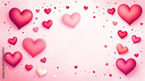Romantic Pink Hearts Scattered on Soft Gradient Backdrop for Valentines Day.