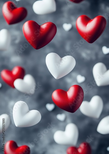 Romantic Red and White Hearts Falling Valentine s Day Love Abstract Background