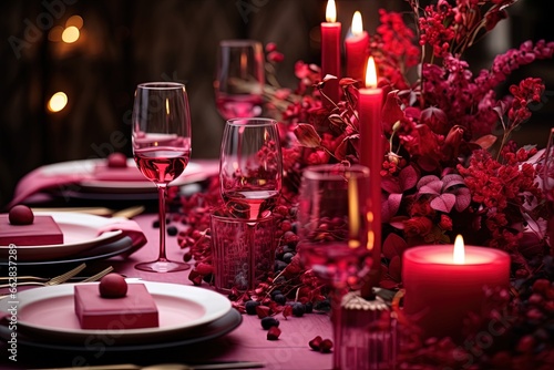 Romantic Valentine's Day Dinner Table Setting, Red Luxury Decoration
