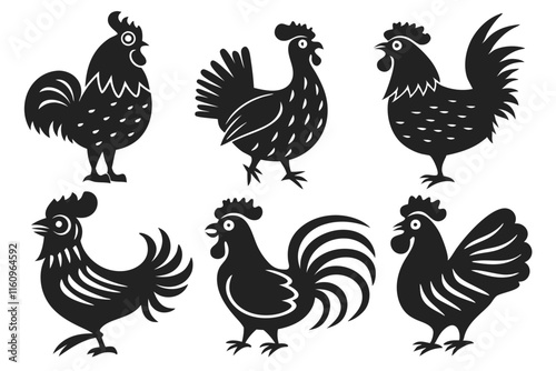 chicken, rooster, bird, hen, farm, vector, animal, cartoon, illustration, silhouette, poultry, animal, cockerel, icon, agriculture, bird, nature, art, beak, chicken, chick, drawing, set, feather, fowl