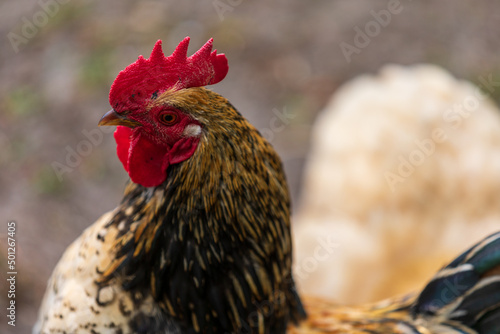 garden, amsterdam, chicken, bird, rooster, farm, animal, poultry, beak, fowl, agriculture, head, red, feather, brown, feather, white, domestic, eye, farming, nature, closeup, cockerel, comb, farm animal, crest