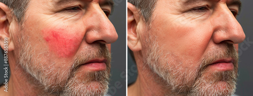 man, treatment, closeup, face, vascular, star, freckle, back, dermatology, man, before, after, closeup, male, skin, red, facial, cheek, nose, comparison, laser, acne, dermatitis, sensitivity, disorder, vein, therapy, cosmetology, complexion, medicals, disease, medicine, dermatologist, pore, blemish, flush, circulation, anatomy, removal, care
