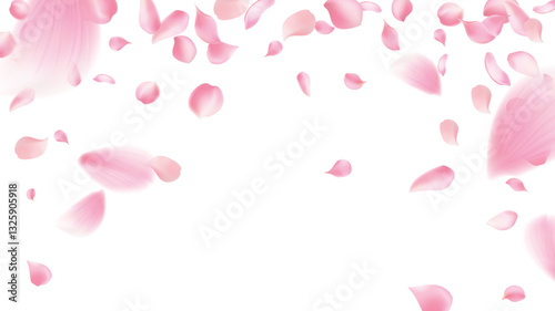 Rose petals or sakura flying petals, romantic background with realistic pink cherry flower petals flow or falling motion. Love, romance, floral spring season,cherry blossom