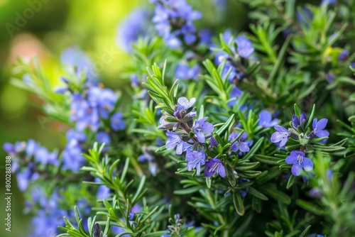 Rosemary bush in bloom close up view