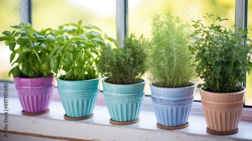 rosemary, planting, herb, illustration, thyme, parsley, window sill, potted, colourful, fragrant, room, garden, indoor, sunlight, green, fresh, culinary, aromatic, kitchen, basil, mint, oregano, chives, dill, sage, cilantro, nurture, grow, dirtied, water, leaf