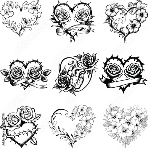 Roses And Heart Svg Bundle, Floral Heart Svg