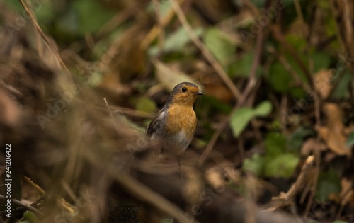 Rotkehlchen steht auf dem Boden