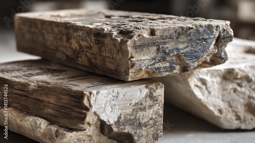 Rough-hewn rectangular stones, weathered texture, architectural fragments, building debris - historic crumbling weathered antique