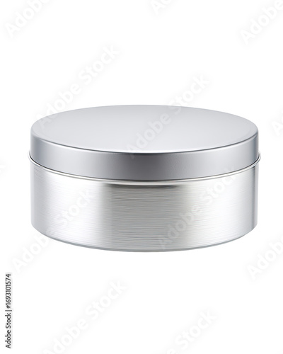 round, tin, metal, aluminium, silver, container, storage, cardboard box, cosmetic, candle, food, gift, circular, lid, top, bottom, smooth, shiny, glossy, empty, blank, product, presentation, display, closed, sealed, modern, simple, minimalist, light, bright, clean, neutral, industrial, elegant, hard-wearing, recyclable, giftwrapped, decorative, customizable, high-quality