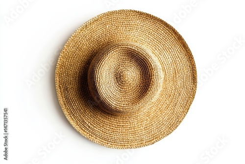 straw, hat, round, summer, sun, protection, natural, light, brown, beige, woven, fashion, accessory, headwear, summer, vacation, holiday, travel, stylish, hand-made, environmentally friendly, comfortable, sunblock, vintage, classic, elegant, unique, practical, lightweight, hard-wearing, portable, protective, casual attire, relaxed, trendy, beach, garden, top, view