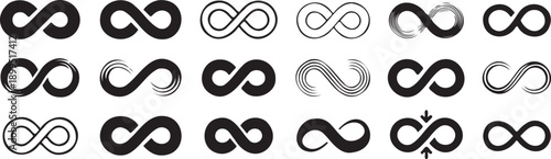 rounded geometric shapes pattern collection black, abstract circular symbols isolated background, minimal modern design elements