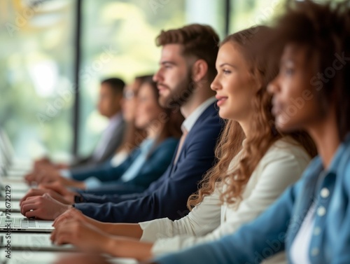 row of business people working at seminar