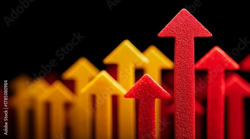 Row of red and yellow arrows pointing upward. Concept of progress and growth