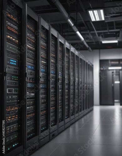 Rows of humming servers in a modern data center , modern, cable