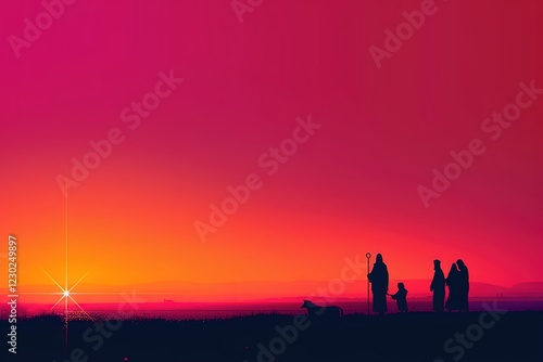 royal and stylish, A minimalist design with a subtle depiction of the Nativity scene and the star of Bethlehem in a bright color against a muted background