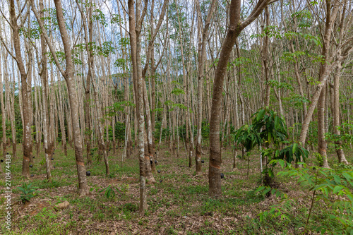 Rubber tree or Hevea brasiliensis forest at Thailand