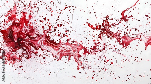 Ruby paint splatters forming intricate designs on a clean white canvas.