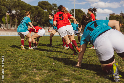 rugby, team, playing, match, sport, field, people, sport, adult, group, woman, spain, outdoors, day, teamwork, challenge, practicing, commitment, rough, athlete, sunlight, light, young, mid, mature, woman, grass, plant, running, caucasian, number, symbol, effort, competition, training, rivalry, facility, tackle, female