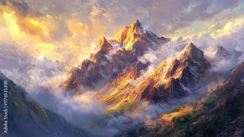 mountain landscape, scenic beauty, natural wonder, soft light, golden hour