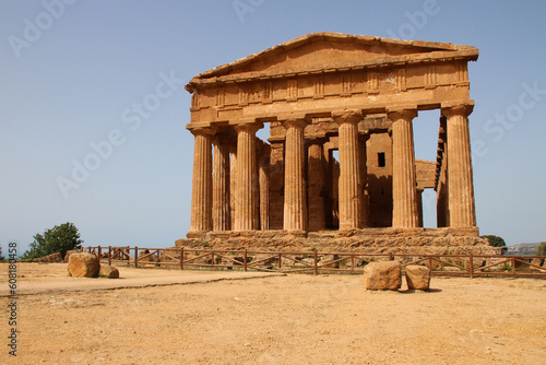 ruined ancient temple (temple of concord) in agrigento in sicily (italy)