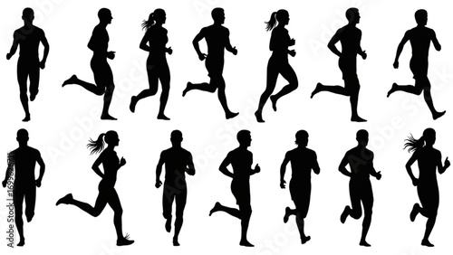 Running Man and Woman Silhouettes – Vector Set of Male and Female Runners