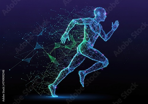vector, network, connection, polygon, abstract, technology, digital, wireframe, mesh, human, motion, ai, artificial intelligence, innovation, datum, fitness, science, modern, speed, running, athlete, sport, dynamic, design, bod, polygonal, futuristic, connectivity, cyberspace, computer, digital artwork