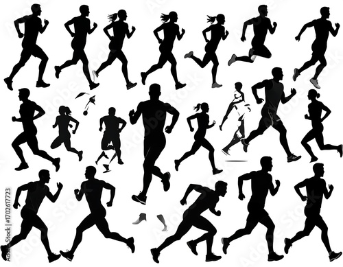 running, silhouette, people, athletic, exercise, action, movement, sport, fitness, active, dynamic, healthy, individual, speed, motion, black, white, background