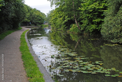 canal, waterway, towpath, deserted, nobody, water lily, plant, grass, outdoors, timberland, forest, industrial, 19th century, reflections, recreation, landscape, britain, england, peaceful, tranquil, tour tourism, rural, countryside, overgrown, transportation, network