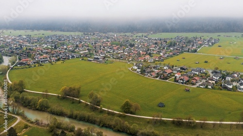 aerial, mountain, alps, village, green, vale, drone, spring, nature, rural, field, landscape, travel, countryside, snow, scenic, house, view, tour tourism, town, blue, european, tree, forest, roof, farming, background, peaceful, architecture, church, meadow, farmland, mountain, terrain, elevation, cabin, sky, sunlight, lush, home, panorama, day, hill, quiet, get-away, environment, field, scenery