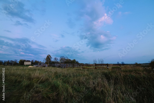 village, house, evening, landscape, moon, autumn, dusk, field, sky, dawn, meadow, summer, morning, nature, season, countryside, rural, scenic, view, country, natural, blue, scene, spring, fall, scenery, cloud, cloudy, settlement, hamlet