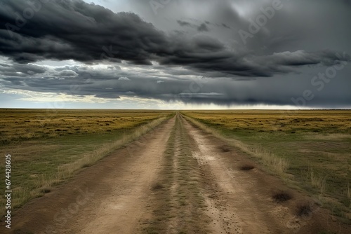 Rural road before storm. Weather clous dramatic sky power. Generate Ai
