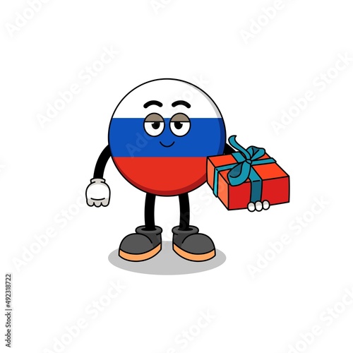 russia flag mascot illustration giving a gift