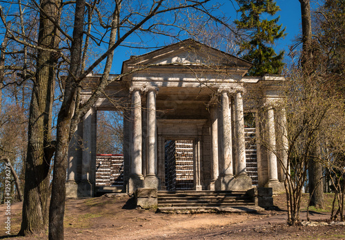 Russia. Gatchina Palace Park. Birch House. In front is a portal mask.
