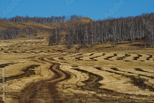 russia, siberia, landscape, travel, nature, field, beveled, spring, curve, contrast, zigzag, sky, background, road, sand, plant, tour tourism, country, building, blue, dry, ancient, architecture, summer, rural, yellow, environment, asia, perspective