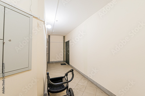 Russia, Moscow- April 17, 2020: interior public place, house entrance. doors, walls, staircase corridors